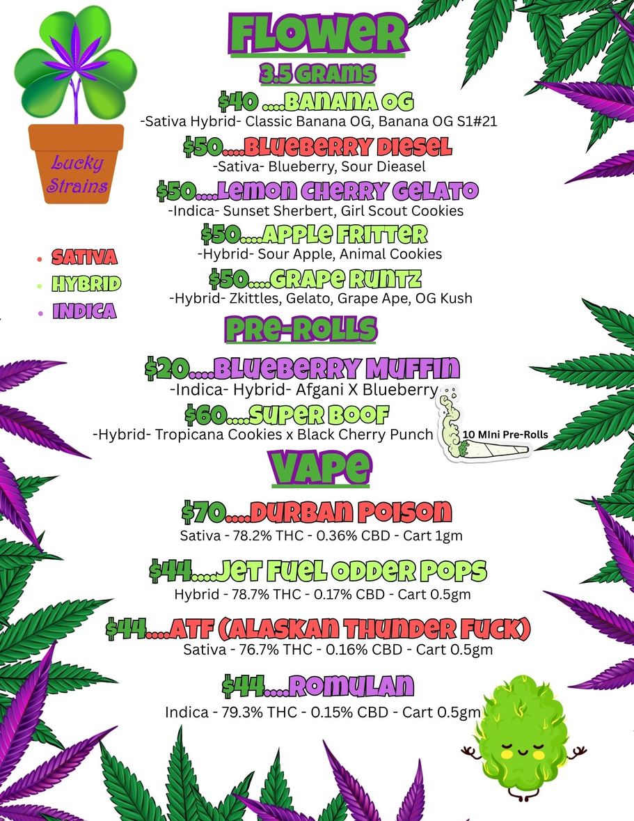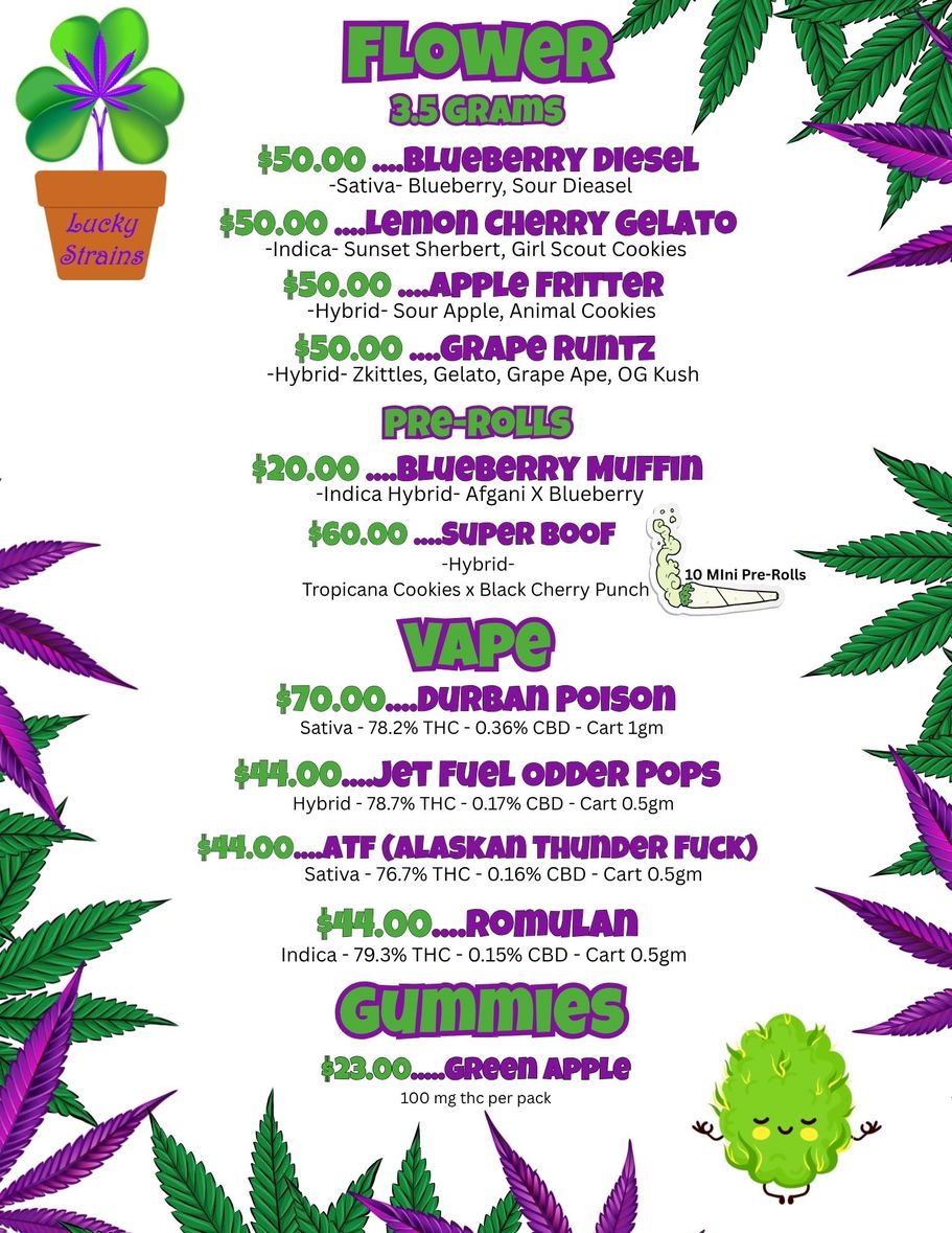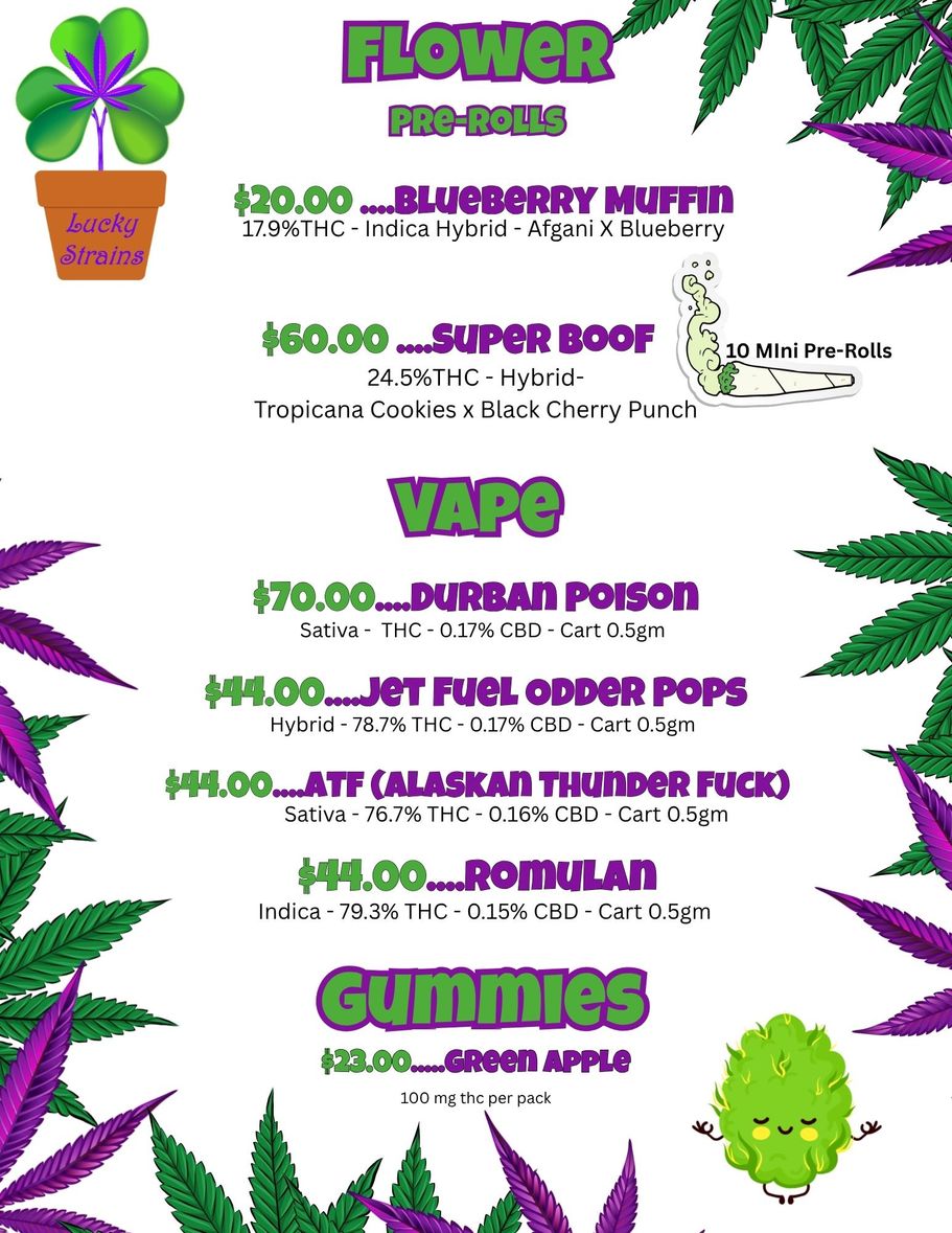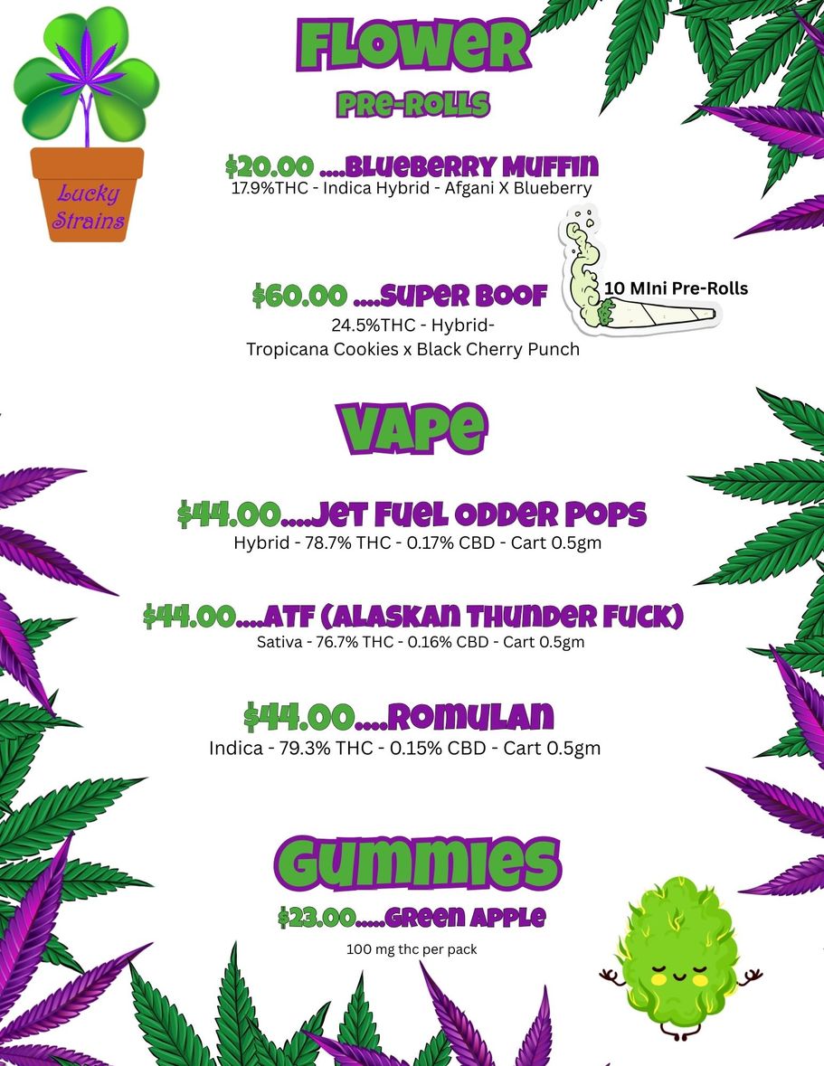 Lucky Strains is a safe space for everyone. First timers get a discount and beginners are encouraged to ask questions. We love to educate the public about safe and responsible consumption. Making these products affordable for the community is important to us, ask about the "Warrior" discount, the "Wise Owl" discount and the "Thank You" discount.