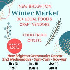 New Brighton Winter Market is indoors at the Community Center. It takes place on the 2nd Wednesday of every month Nov-April. Shop Local!